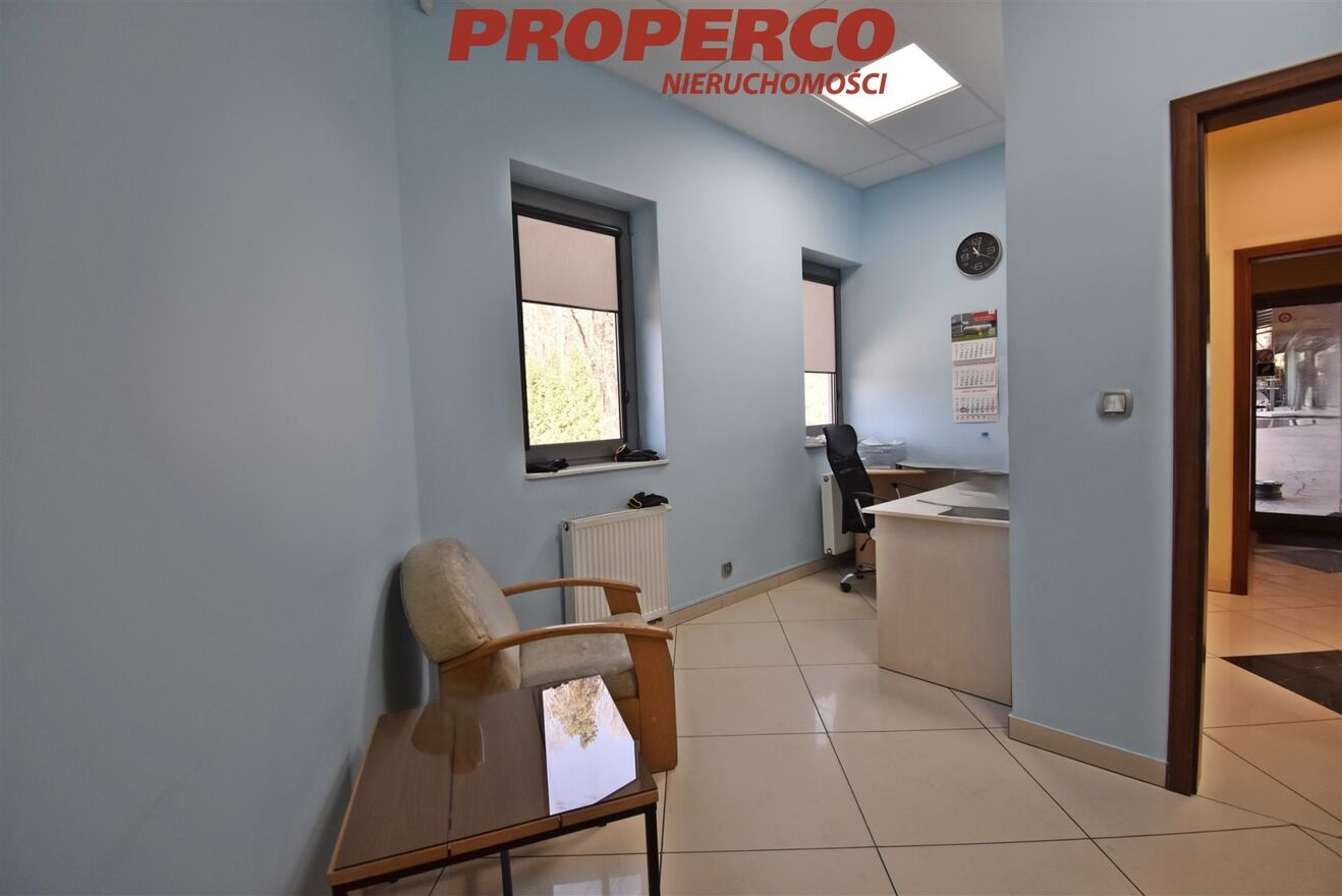 Nieruchomość w doskonałej lokalizacji z bardzo dobrym dojazdem do trasy Kielce - Kraków oraz obwodnicy Kielc. Nieruchomość ogrodzona, oświetlona oraz wyposażona w system monitoringu i alarm.